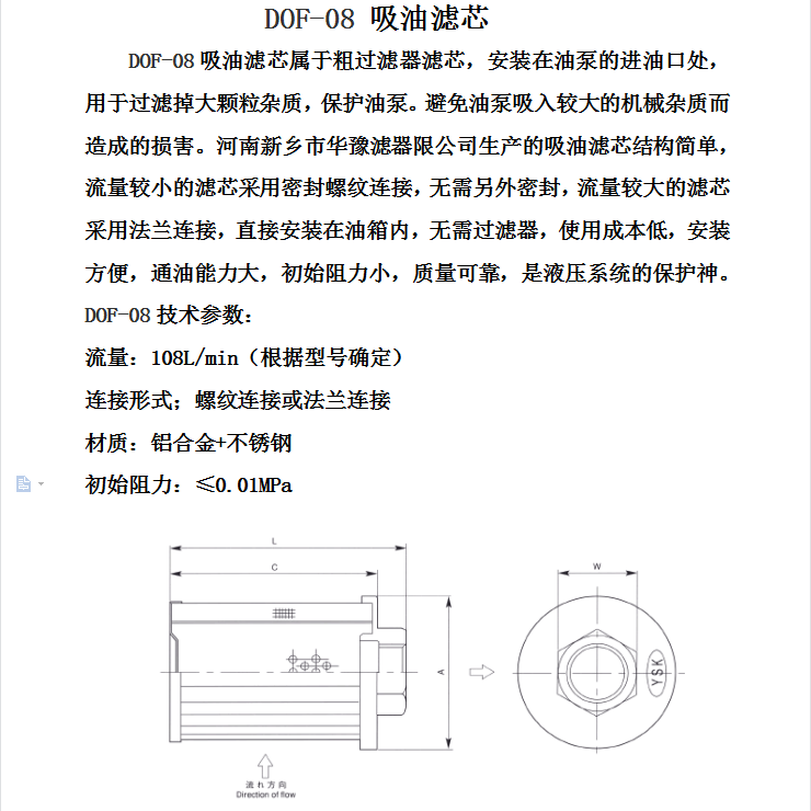 華豫濾器供應SHC吸油濾芯DOF-08